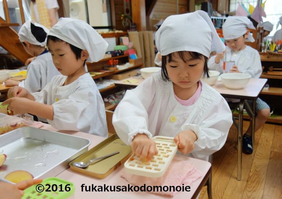 世界中で実践されていますが、深草こどもの家のように自由の幅が広く、室内外、園庭の自然環境が豊かな園はなかなか他にはなく、とても貴重であると自負しております。こどもが自分で好きな時に外に行って遊び、また中に入って活動したり、小動物のお世話をしたり、虫を発見したり、観察したり、図鑑で調べたり、室内では手指を使う活動がたくさんあって、感覚や動き洗練させていくこと。アートハウス(木工活動)、土粘土遊び、月に一度の料理活動、音楽会、こどもたちの毎日の本物の生活を大切にする唯一無二のこどもの家です。そして何より教師養成コース付属園であり、コースの内容を完全に、一つも欠けることなく実現するために日々準備しています。