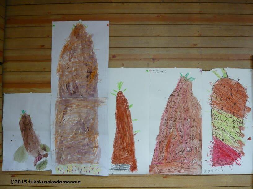 見て、触って、味わった筍を部屋に飾っておくと、自然とこどもたちは絵を描き始めました。