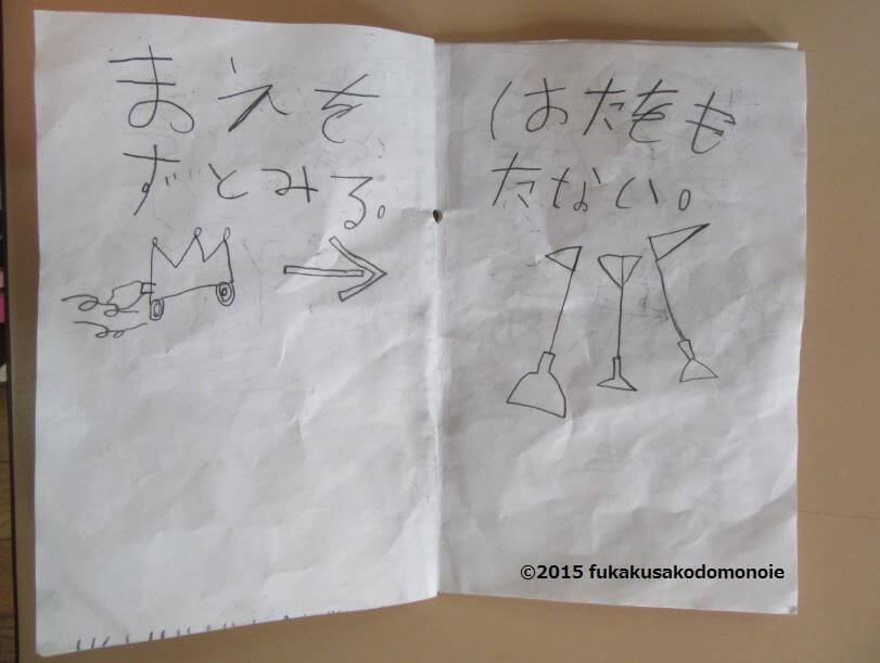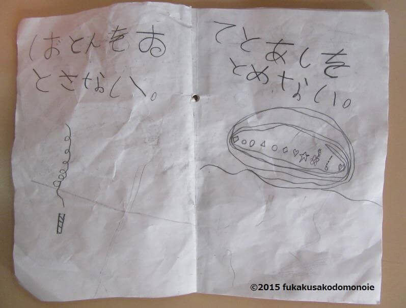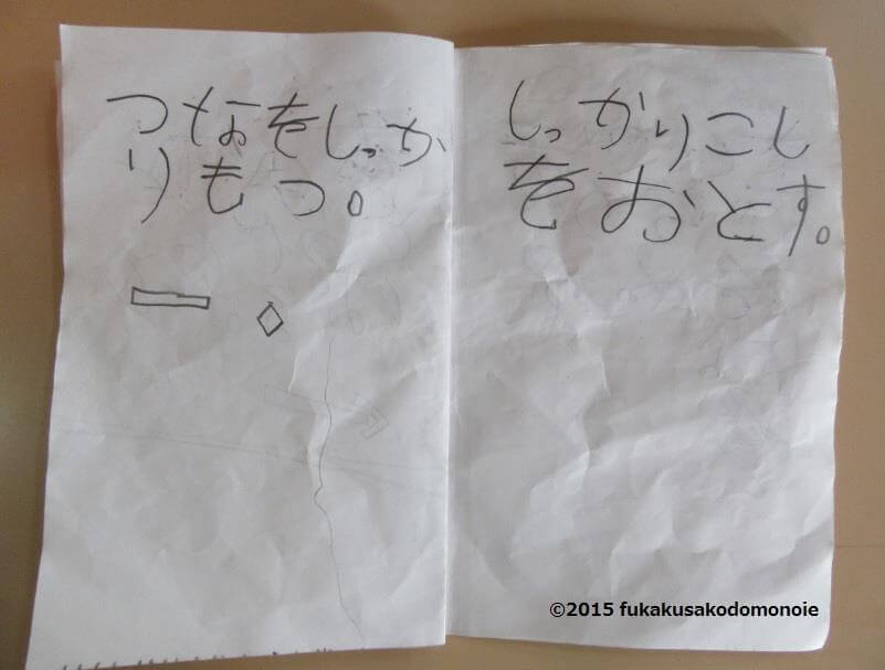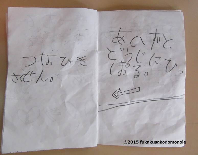 写真は、年長児の女の子が家でつくってきた、運動会の競技で勝つための「作戦ノート」です。
