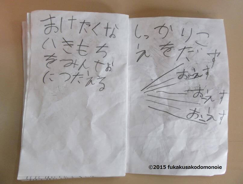 負ける度に悔しくて泣いていましたが、作戦ノートを書くことで、心を落ち着かせ、頑張る気持ちにかえていったようです!このノートをみて、また、たくさんの子どもたちが勝つための本をつくりました。